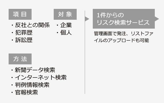 概要 | プロの調査員が検索を実施 検索リスクタイプを指定して入念なチェックが可能! |